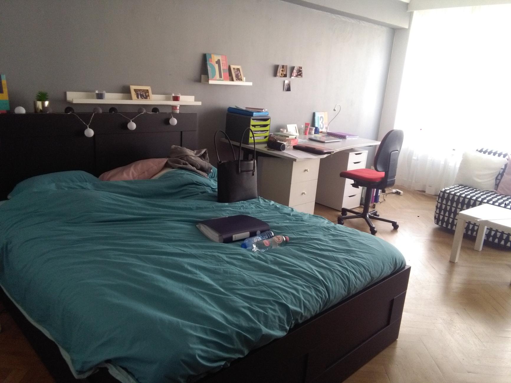 Une grande chambres (24m²) en colocation dans un appartement de 3 chambres avec cuisine équipée, salle de bain, WC.
