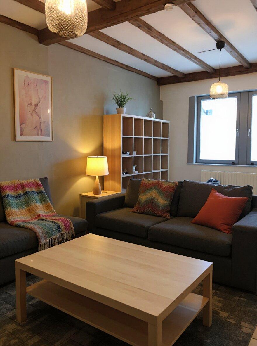 2 Étages : 2 chambres + 1 salle de bain + 1 pièce commune par étage ( possibilité de privatiser la pièce pour 70 Eur/mois).