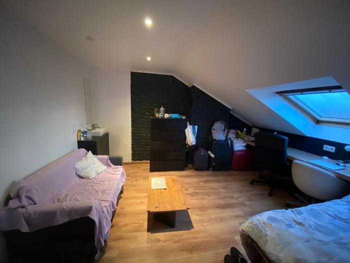Kot individuel meublé (lit double avec matelas, chaise, bureau, luminaires, rideaux,... ) dans une grande maison avec 2 salles de bain (avec machine a laver), 3 toilettes, 1 cuisine (avec four, lave vaisselle micro-onde. Etc. ), ...