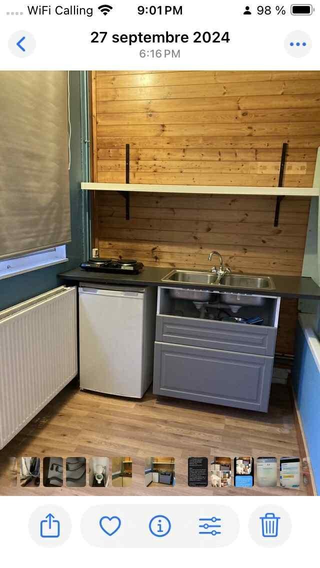 100 % privatif ( WC idem ) : deux radiateurs depuis ma chaudière / le sol en plancher type STEP / le mobilier de cuisine rénové récemment / un FRIGO Intégré : 1 meuble sous*évier avec tiroirs coulissants