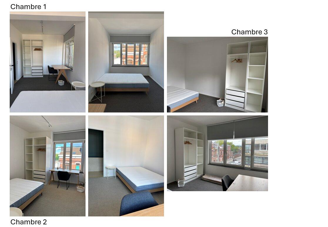 3 chambres de 12m² et 16m² meublées avec lit 140x200cm, penderie et bureau.
