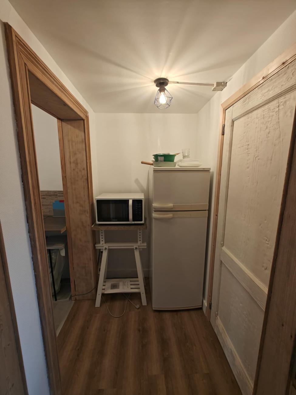 Mini coin cuisine fonctionnel (évier/frigo/congélateur/micro-ondes/four/plaque cuisson)