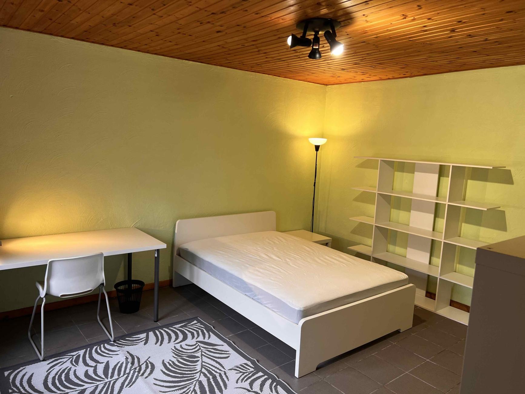 Grande chambre meublée au rez-de-chaussée avec lavabo eau chaude et froide.