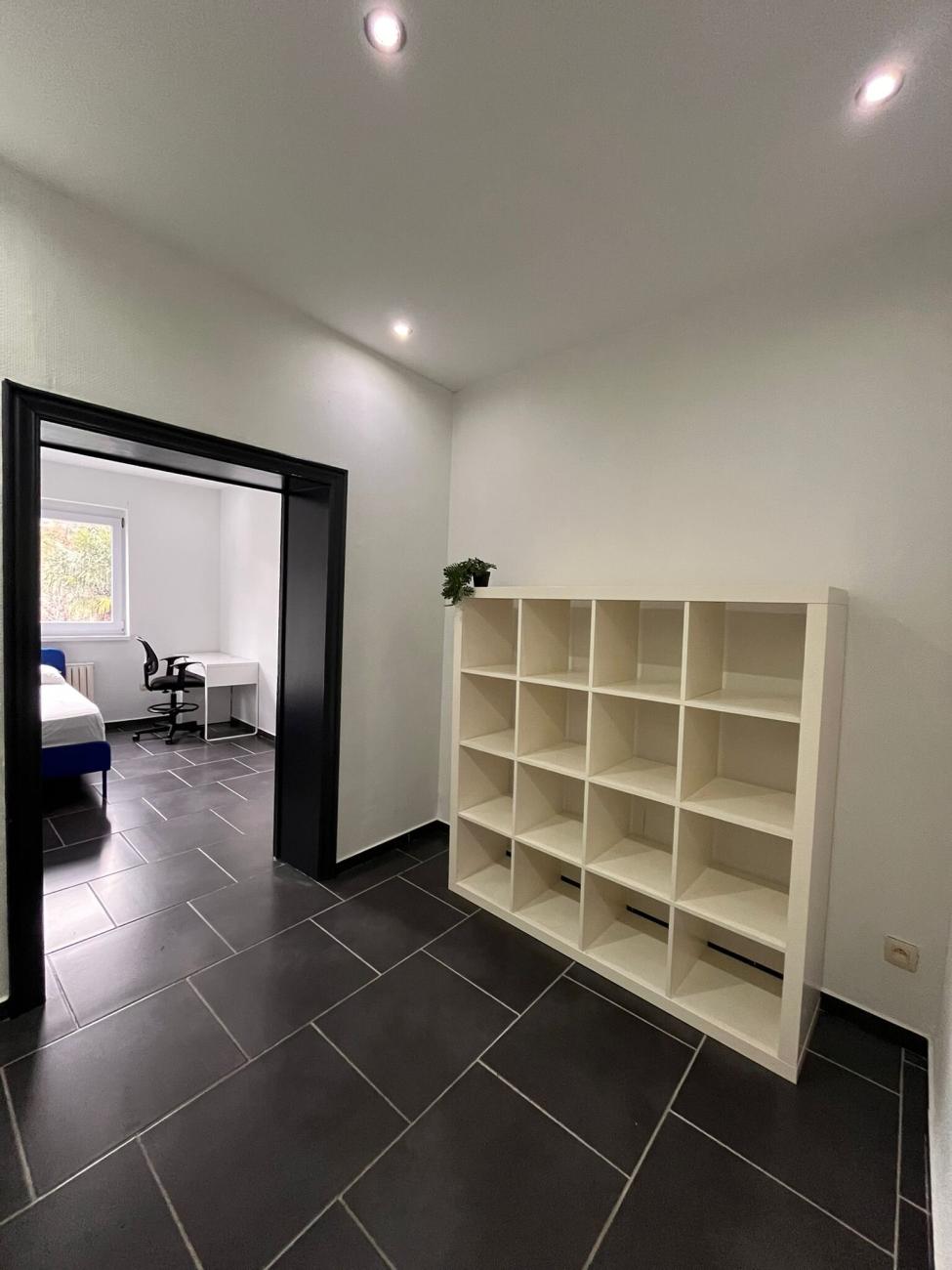🛏️Chambre 5 au 2ème étage (12 m²) : Lit simple avec matelas et oreiller, bureau+espace de rangement, chaise de bureau, garde robe, lampe de bureau. 💶Prix: 465€