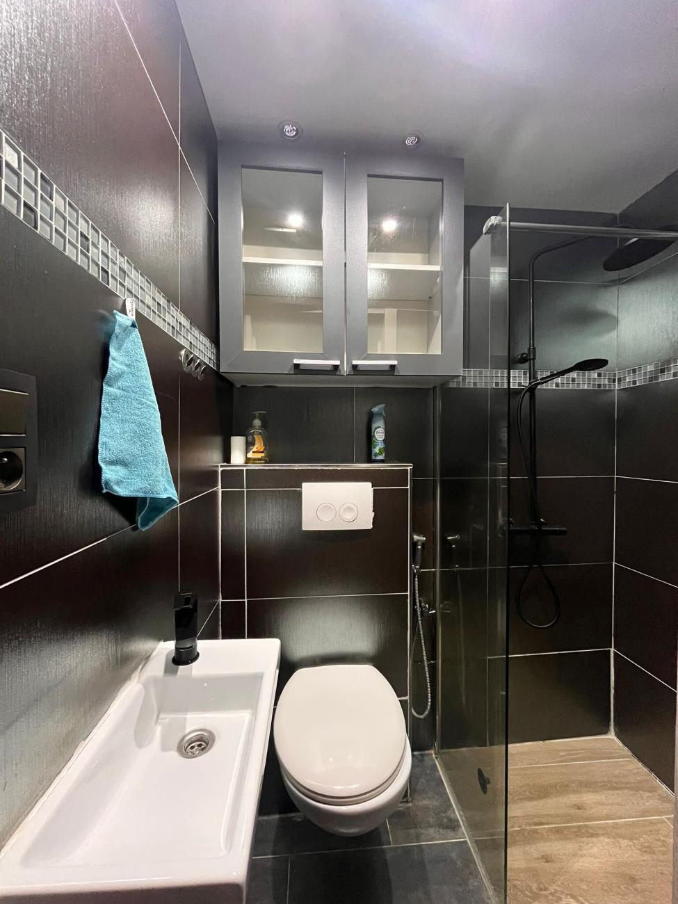 ✔️3 salles de bains et 3 WC (🚿1sdd+wc au RDC, 🚿1sdb+wc au 1er étage et 🚿1sdd+wc au 2ème étage) à partager entre les locataires du même étage.