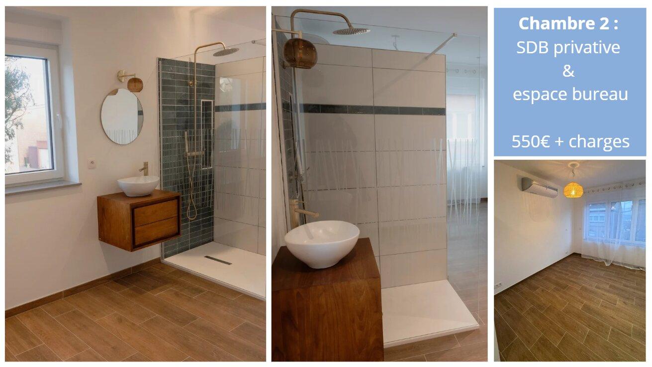 3 chambres lumineuses avec SDB privatives dans maison passive rénovée entièrement.
