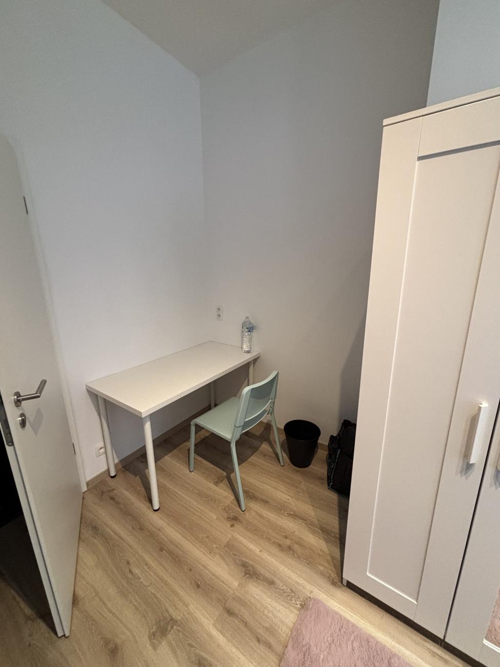 Meublé: lit 1 personne, bureau +chaise, garde-robe.