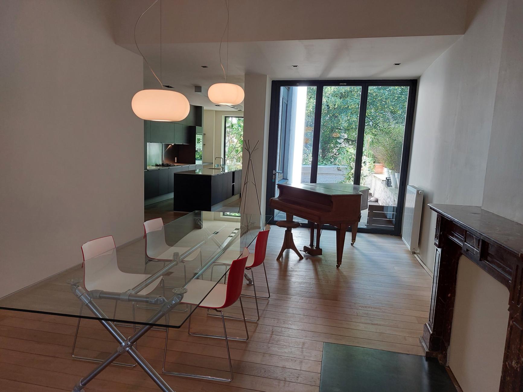 Entièrement meublée, la maison est chaleureuse et lumineuse, elle a été rénovée avec beaucoup de goût par l’atelier Pygma Architecture. Les beaux volumes et les matériaux de qualité confèrent à l’ensemble un caractère unique. Espaces communs : Rez-de-chaussée : grand hall d’entrée avec escalier en marbre. WC séparé. Superbe espace de vie de 70 m² comprenant salon, salle à manger, cuisine full équipée (marque César) donnant sur une grande cour-terrasse aménagée de 60 m² (éclairage indirect, plantations, arrivée d’eau). 1er étage : grande salle de bain de 20 m², baignoire, grande douche, WC, plan de travail en schiste noir, armoire-miroir sur mesure. Espace dressing. Sous-sol : grandes caves avec buanderie. Confort & équipements : Chauffage au gaz, buanderie, adoucisseur d’eau, châssis acoustiques triple vitrage Schüco dans toute la maison, excellente isolation