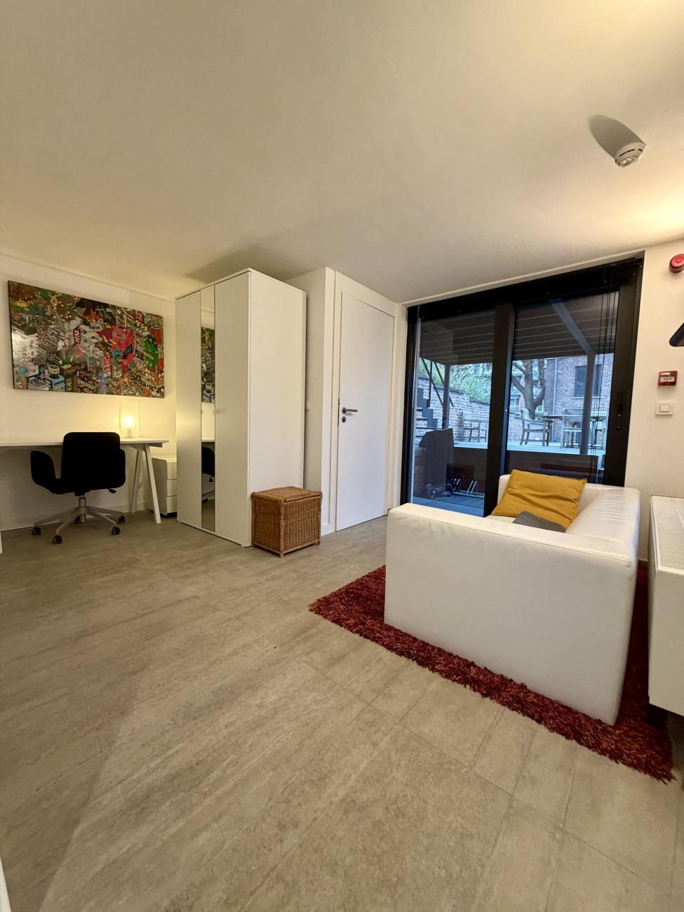 Loyer : 425 € (+125€ forfait charge). Chambre avec lit double, terrasse, douche, bureau et toilette privative.