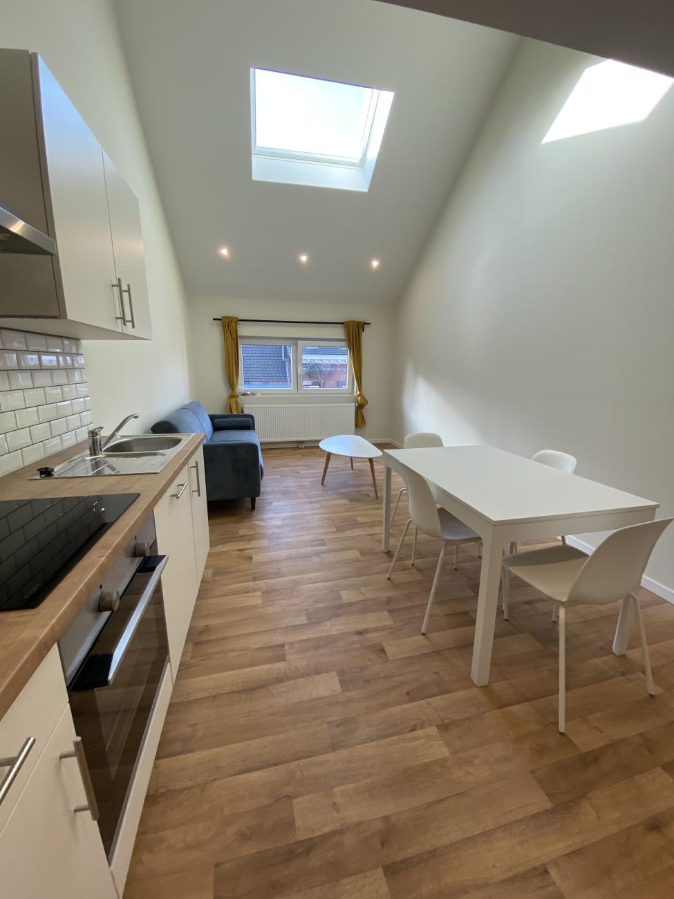 - Cuisine équipée : taques, frigo, congélateur, four, hotte, lave-vaisselle