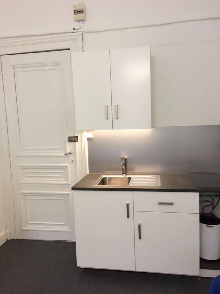 chambre meublée, mini cuisine, frigo, micro-ondes, plaques électriques, eau chaude/froide, bureau, lit, garde-robe, étagère, connexion internet individuelle ou partagée à charge du koteur, douches et WC communs.