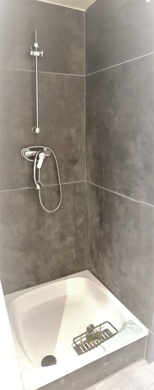 1-Sdb (eau ch&fr): douche en carrelage+lavabo+WC