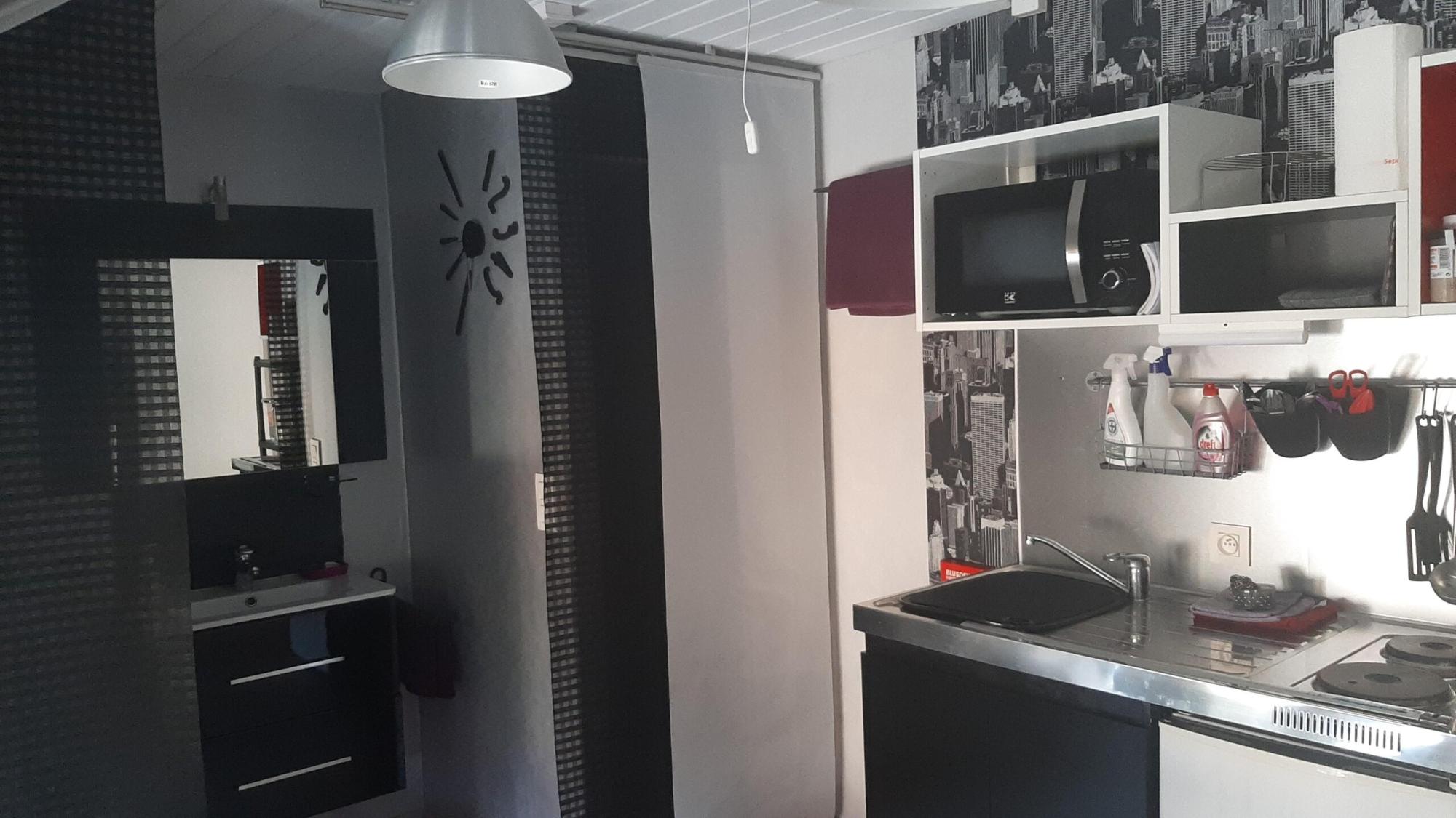 Je mets à votre entière disposition une chambre nouvellement équipée. Elle comprend : lit, placard, bureau. Une autre pièce avec kitchenette (four micro ondes, frigo, plaques électriques, congélateur, salle de bain, rangement.
