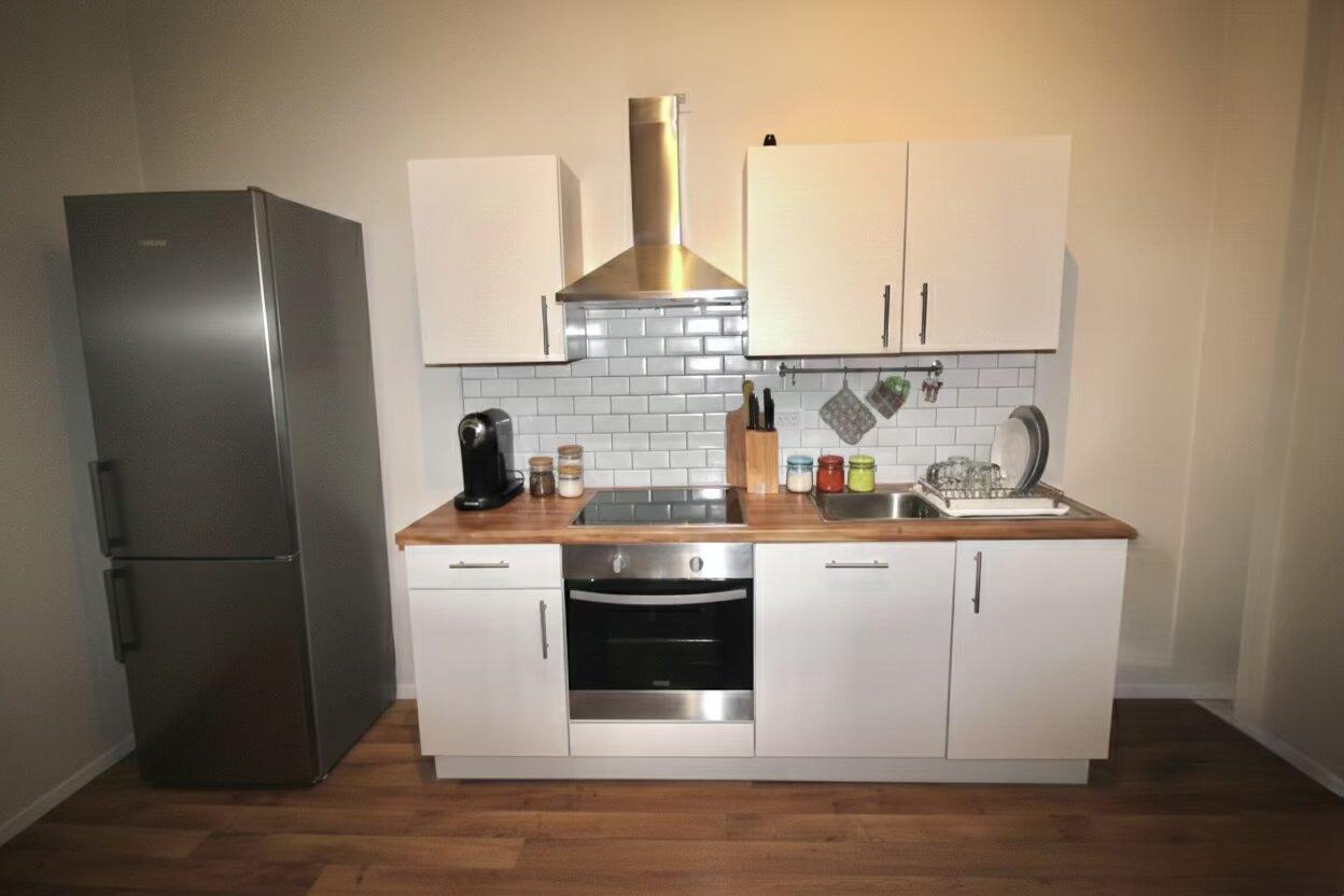 - Cuisine équipée : taques, frigo, congélateur, four, hotte, lave-vaisselle