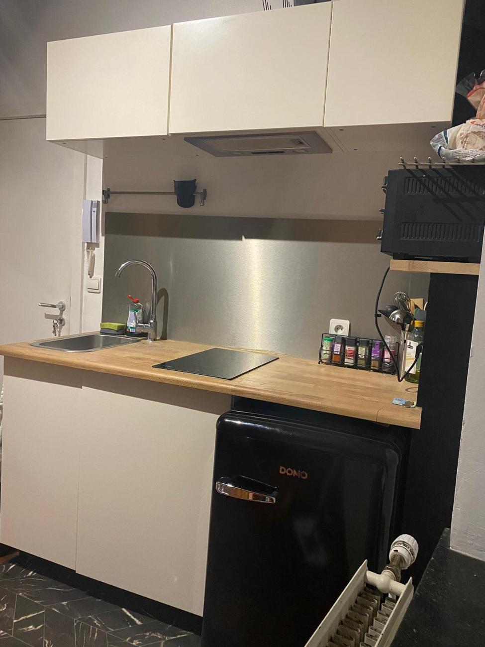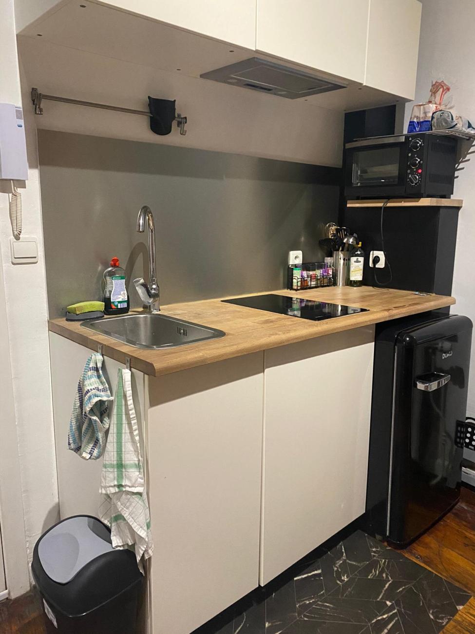 Studio entièrement remis à neuf situé au rez de chaussée d'une maison de 3 étages. Cuisine semi-équipée équipée ( taque vitro, frigo, table bar avec 2 tabourets), SDB (douche, évier, toilette), séjour avec lit mezzanine (200X140). Nouveau châssis double vitrage, chauffage central, éclairage Led. Accès à une buanderie avec machine à laver, séchoir.