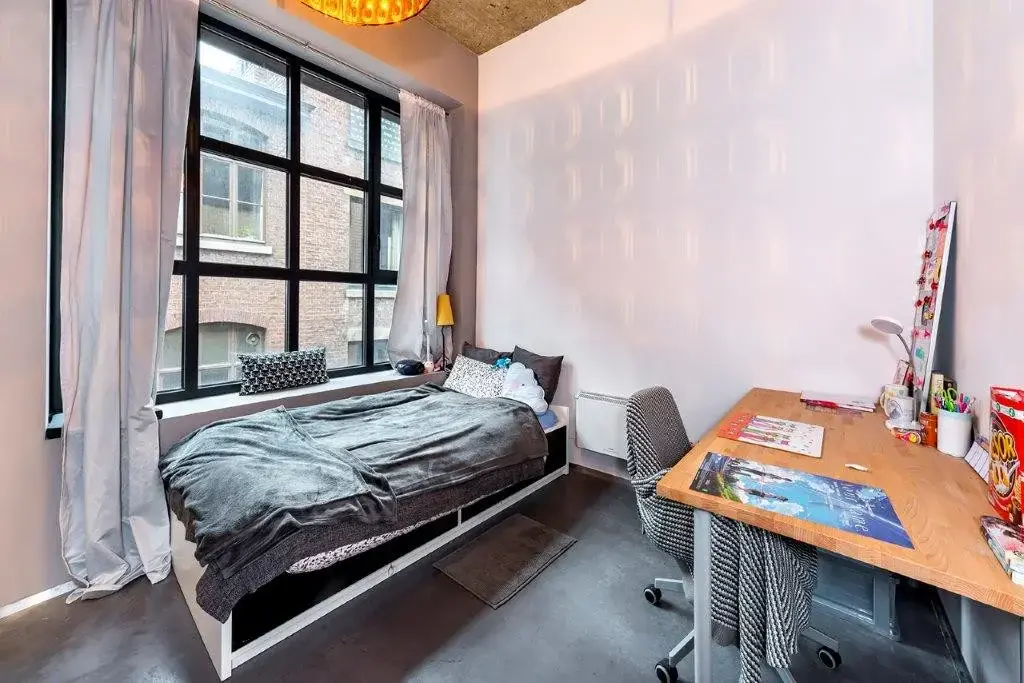 Nichée au cœur de Liège, notre résidence étudiante occupe un bâtiment d’exception classé au patrimoine architectural de la ville. Entièrement rénovée dans un esprit industriel contemporain, elle allie le cachet de l’histoire au confort d’aujourd’hui : béton apparent, sols en béton poli, volumes généreux, ascenseur, adoucisseur central et lumière naturelle à chaque étage.