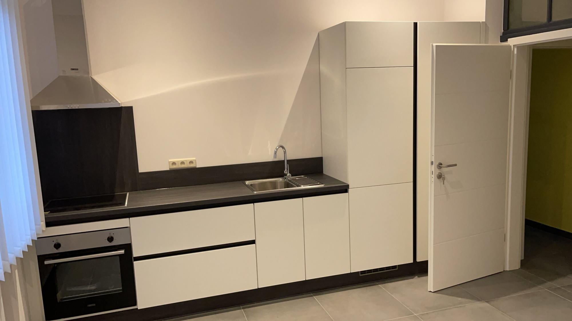 Kot/studio avec cuisine full équipée et salle de douche.