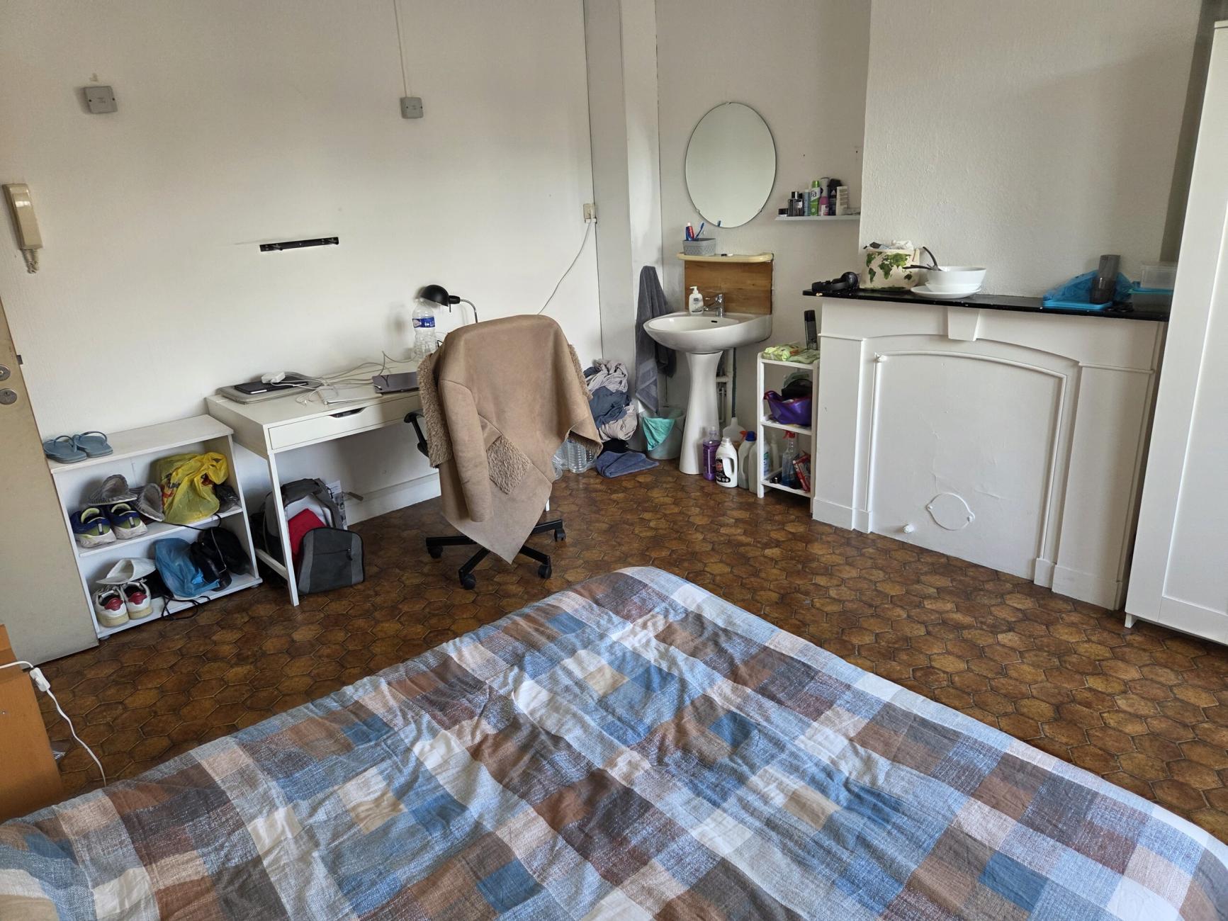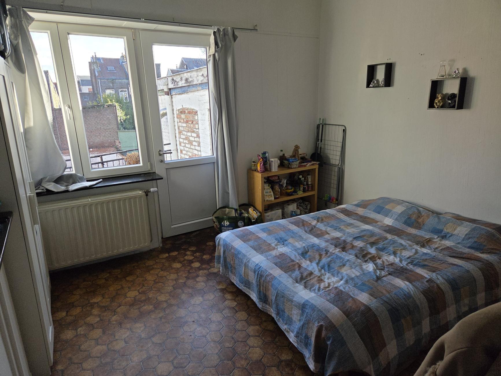 Kot individuel meublé (lit double king size avec matelas, armoire, chaise, bureau, luminaires, rideaux,... )
