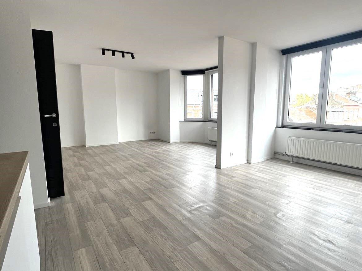 Liège, Place Général Leman: bel appartement situé au dernier étage ( 3ème) remis à neuf de 100m² : Il se compose comme suit: hall d'entrée, living lumineux, cuisine-équipée, 2 chambres dont une avec balcon, salle de douche moderne. Dv pvc + volets à l'arrière. Compteurs séparés pour les énergies