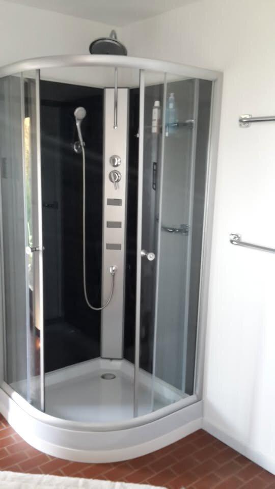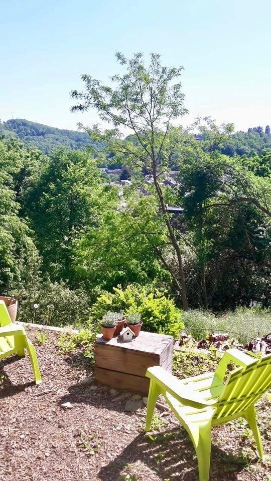 Le studio dispose d'une grande terrasse plein sud donnant sur le jardin, dans un environnement boisé et avec vue sur la vallée.