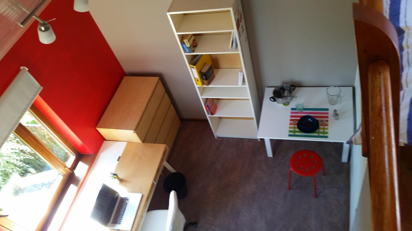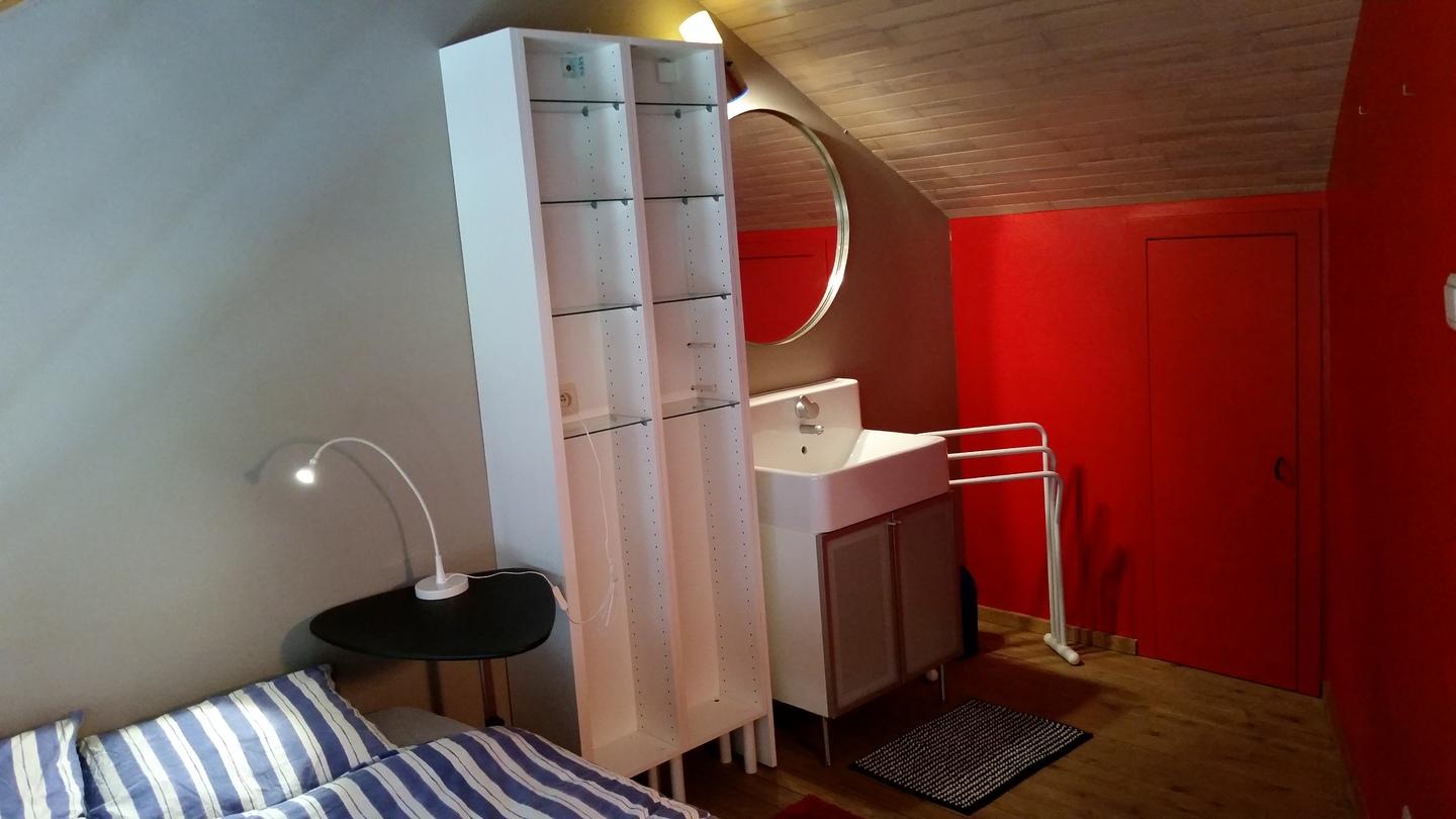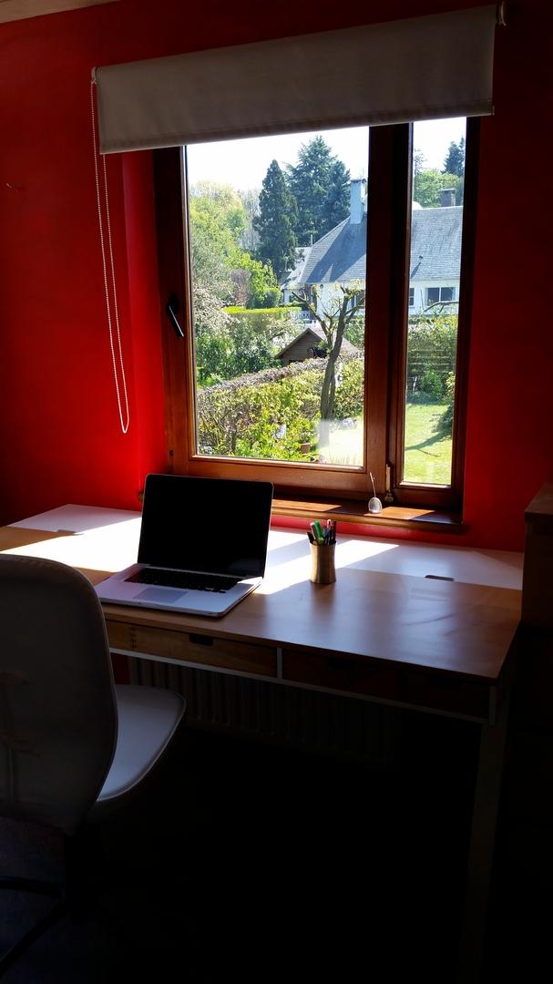 Studio (kot) à louer- Sart Tilman- 420 euros par mois et 20 pour nettoyage- 10 min à pieds amphi Univ- lit 2 pers (avec couette et oreilllers)- gd bureau- coin à manger- CALME- kitchnette bien équipée (évier, frigo, 2 taques induction, hotte et vaisselle)- bcp rangements et armoire 3 portes pour vêtements- douche et Salle de douche et WC à partager avec 1 autre étudiant. Vue jardin ! NON FUMEUR