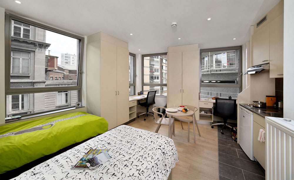 La résidence-services Meuse Campus compte 235 studios privatifs (single, twin et double) pour étudiants et jouit d’une localisation idéale en face de l’ULiège, à proximité directe de la majorité des facultés et écoles supérieures de la ville et à deux pas du centre de Liège et de toutes les facilités (commerces, loisirs, transports).