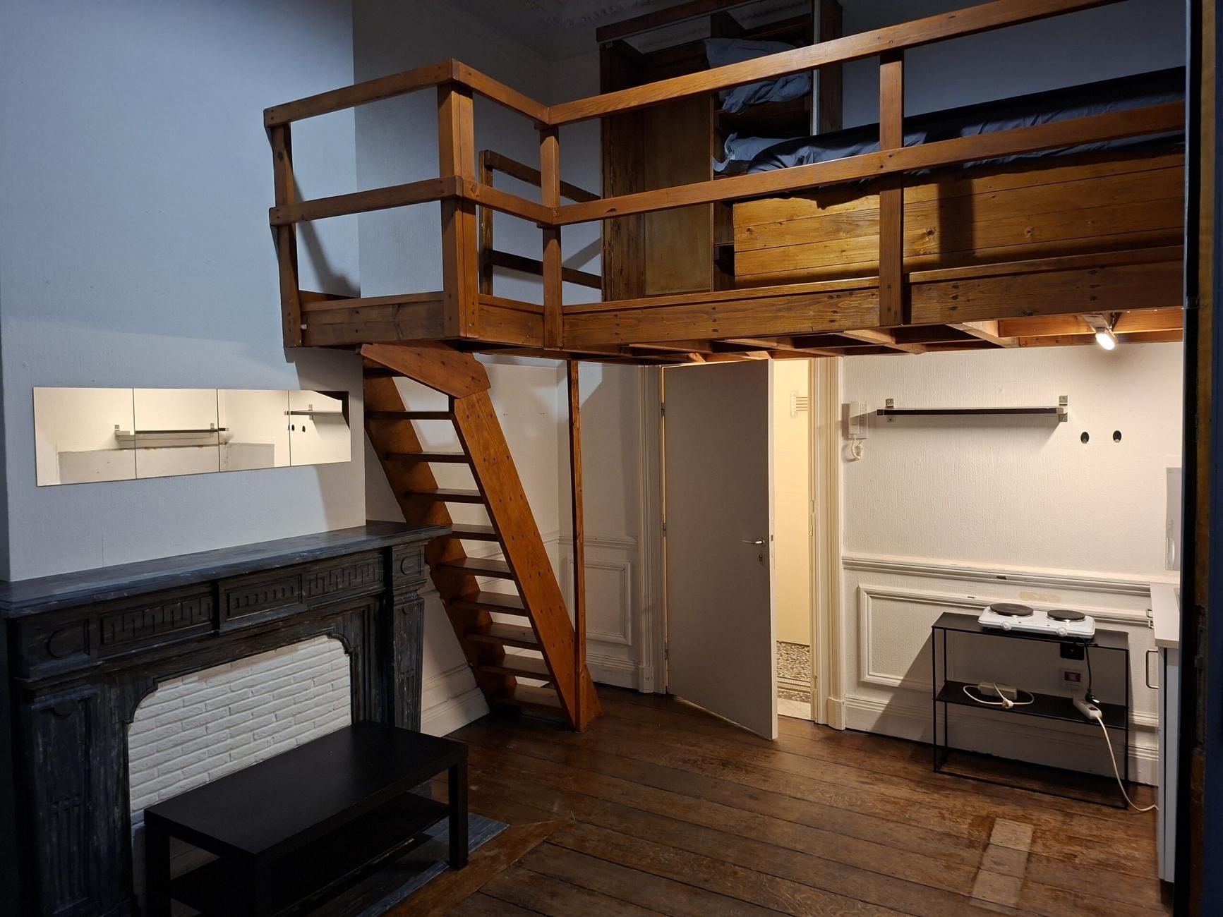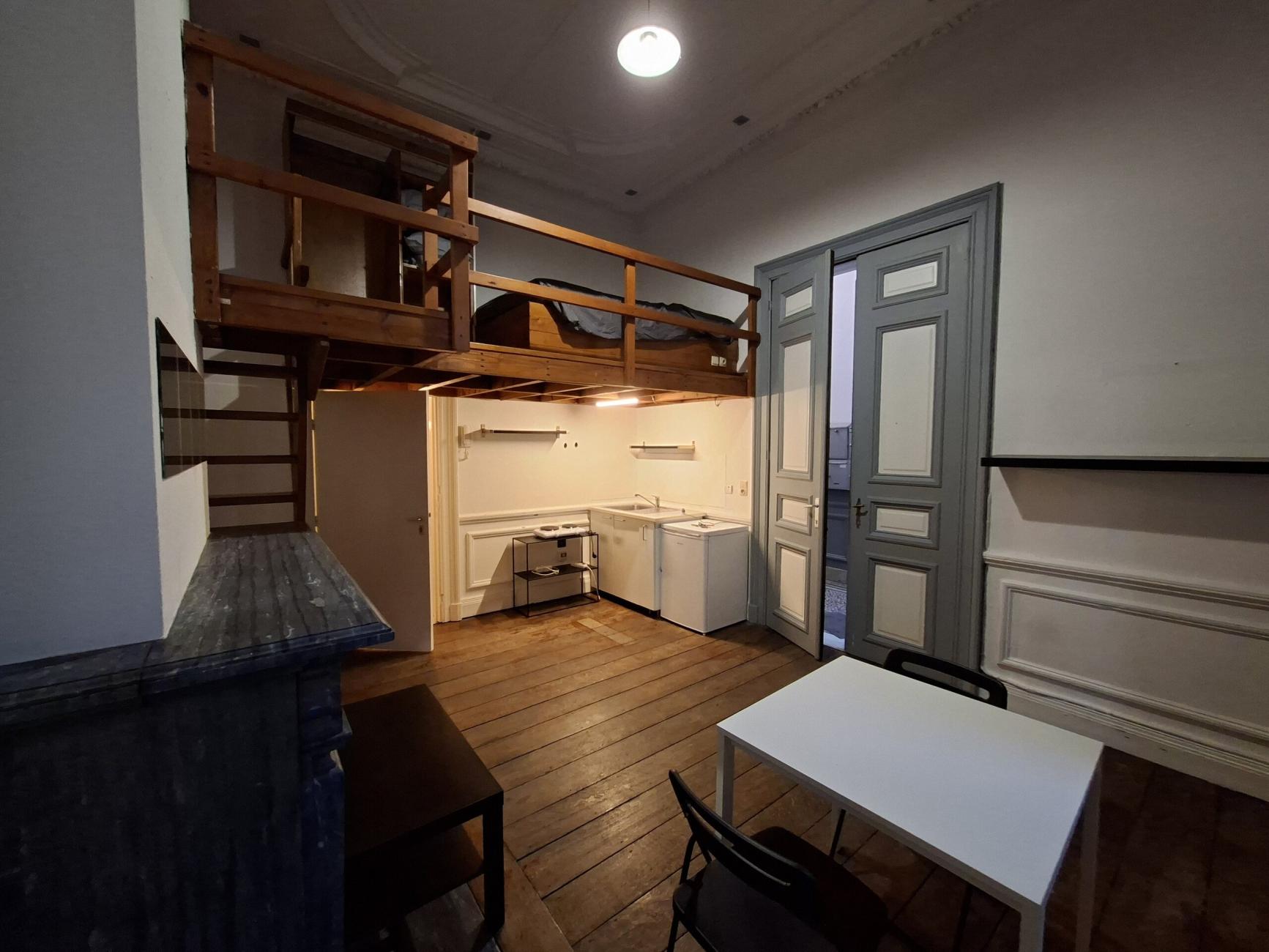 Studio 1 pièce plus mezzanine au premier étage de l'immeuble. C'est un bâtiment sans commun exclusivement dédié à la location de chambres pour étudiants non domiciliés. Ce studio, très agréable est partiellement meublé. N'hésitez pas à nous contacter pour une visite. En face d'une boulangerie à 50 mètre des arrêts de bus, du tram et des grandes surfaces, entre la gare des Guillemins (5 min à pied) et l'hyper centre (10 min à pied).