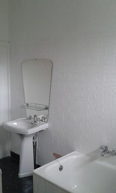 Une SDB pour deux étudiants ( douche , baignoire , évier ) .