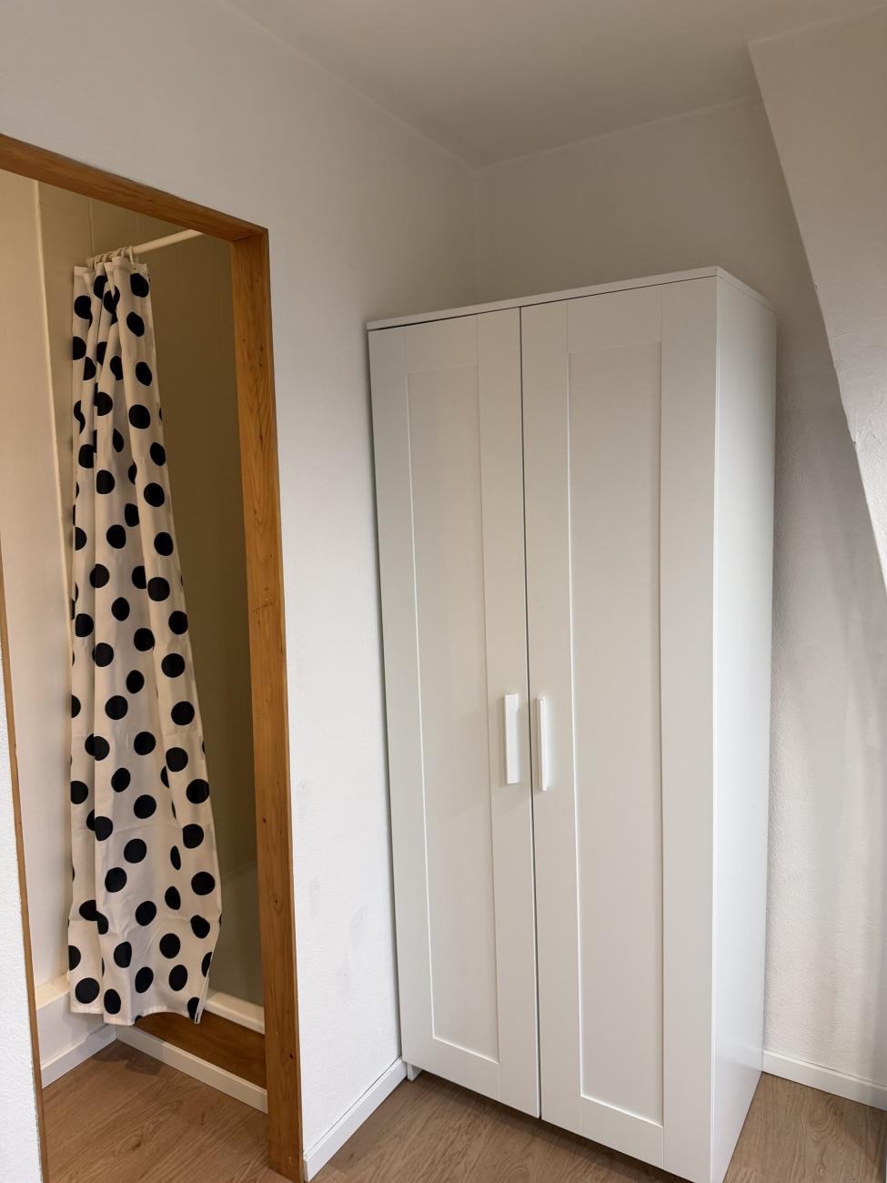 Kot en parfait état réservé aux étudiants dans un immeuble de 3 étages situé dans un quartier classé. Récemment des investissements énergétiques ont été effectué. La chambre est lumineuse et complètement équipée avec une salle de bain privée, bureau, garde-robe et lit. Chaque étage a une (nouvelle) cuisine commune équipée avec une cuisinière, four, four micro-onde, frigos, congélateur, etc. De plus, il y a une machine à laver et un séchoir. Les communs sont nettoyés chaque semaine par une entreprise professionnelle.