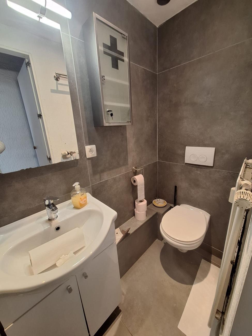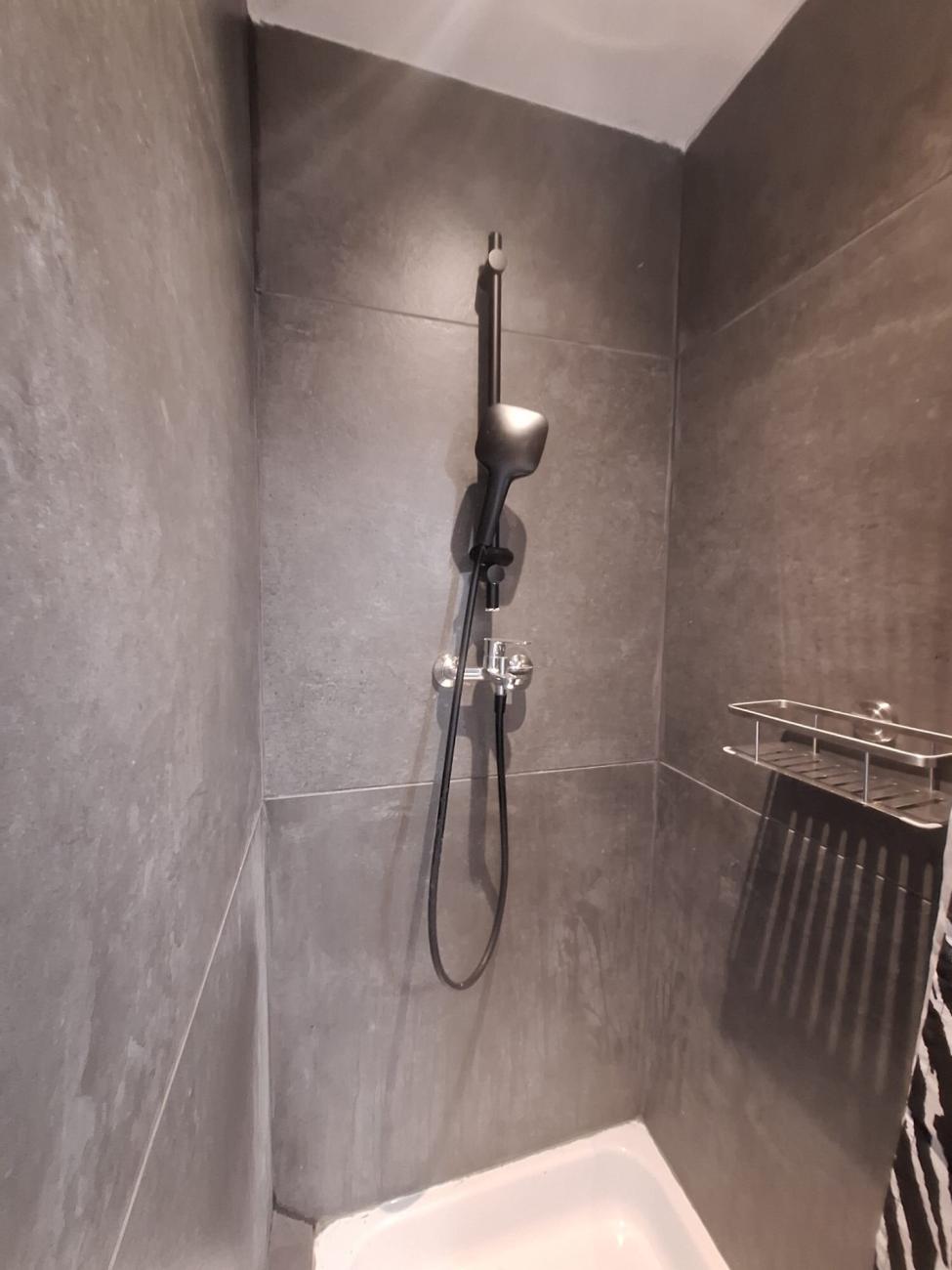 1-Sdb (eau ch&fr): douche en carrelage+lavabo+WC