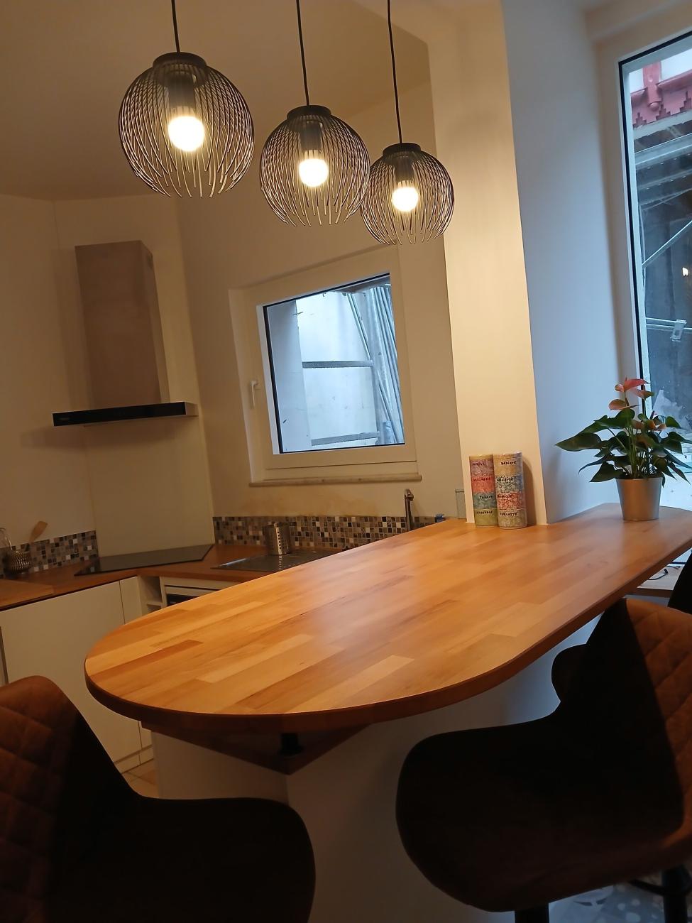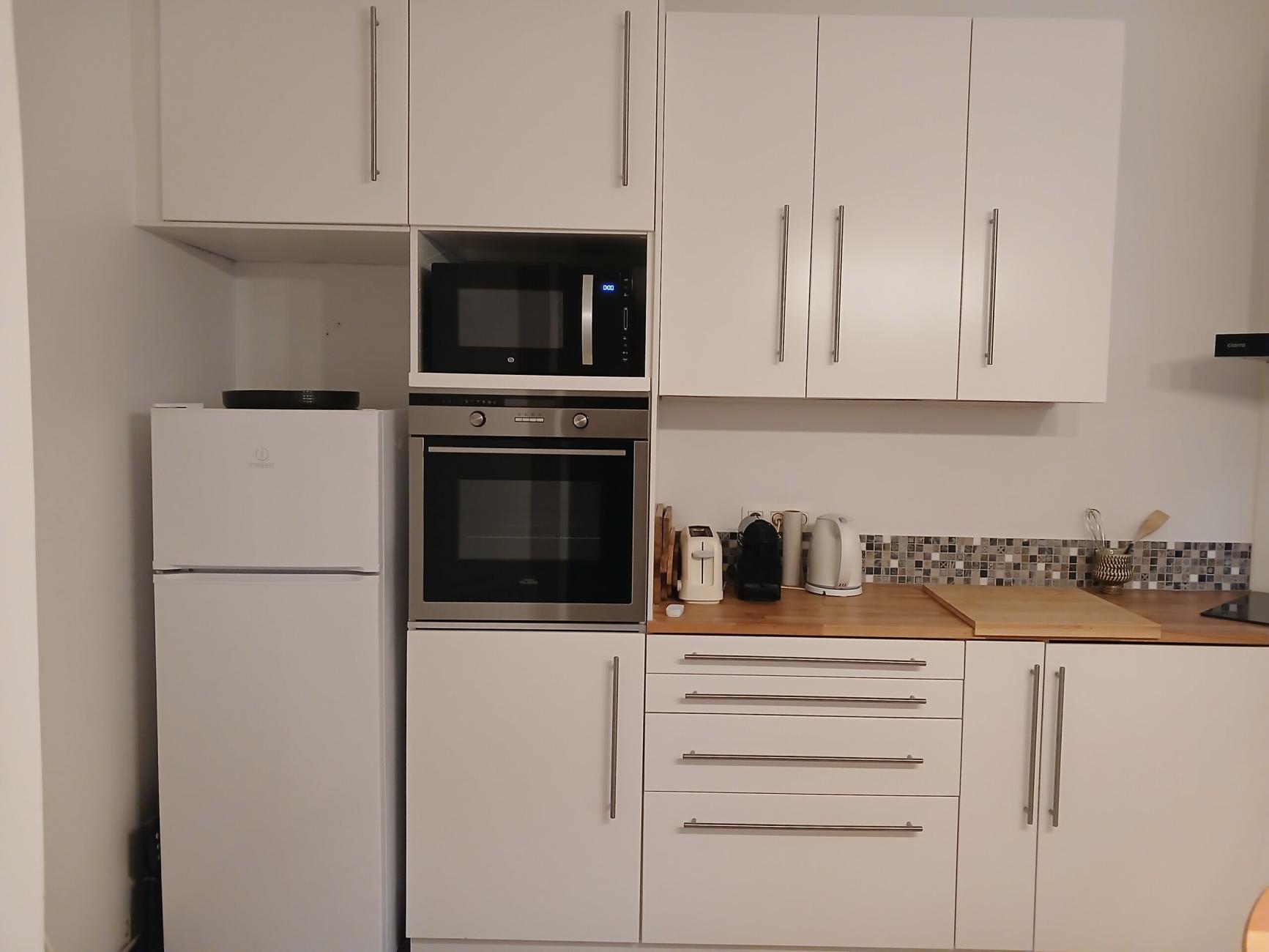 - Cuisine moderne équipée (lave vaisselle, réfrigérateur, machine à café expresso, micro-ondes, four, mange debout, etc. ) avec vue sur la terrasse de 15 m2