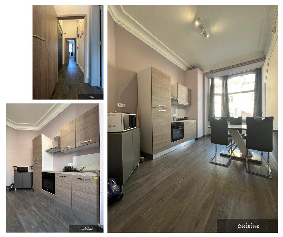 ✅ commun : cuisine équipée (grand frigo, congélateur, micro ondes, taques, …), local vélo et poubelles