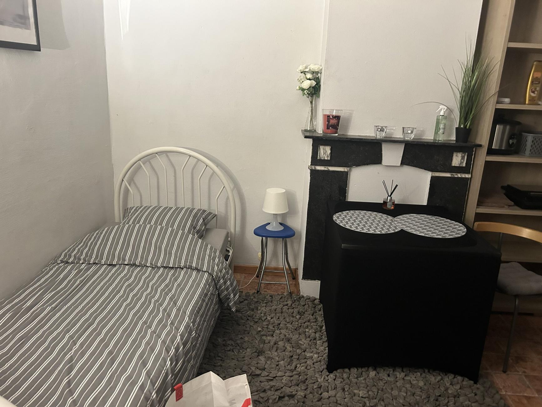 Chambre meublée avec kitchenette dans un immeuble de rapport, (salles douches et wc partagés) Nettoyage douches, wc, hall et escaliers pris en charge tous les lundis par le propriétaire.