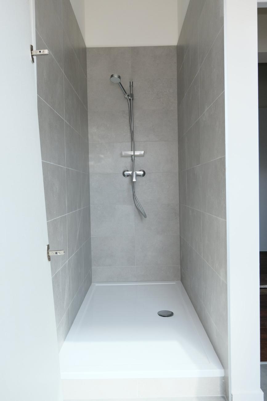 • Belle salle de douche partagée (douche à l'italienne, simple vasque avec rangement et miroir) avec un emplacement réservé pour une machine à laver
