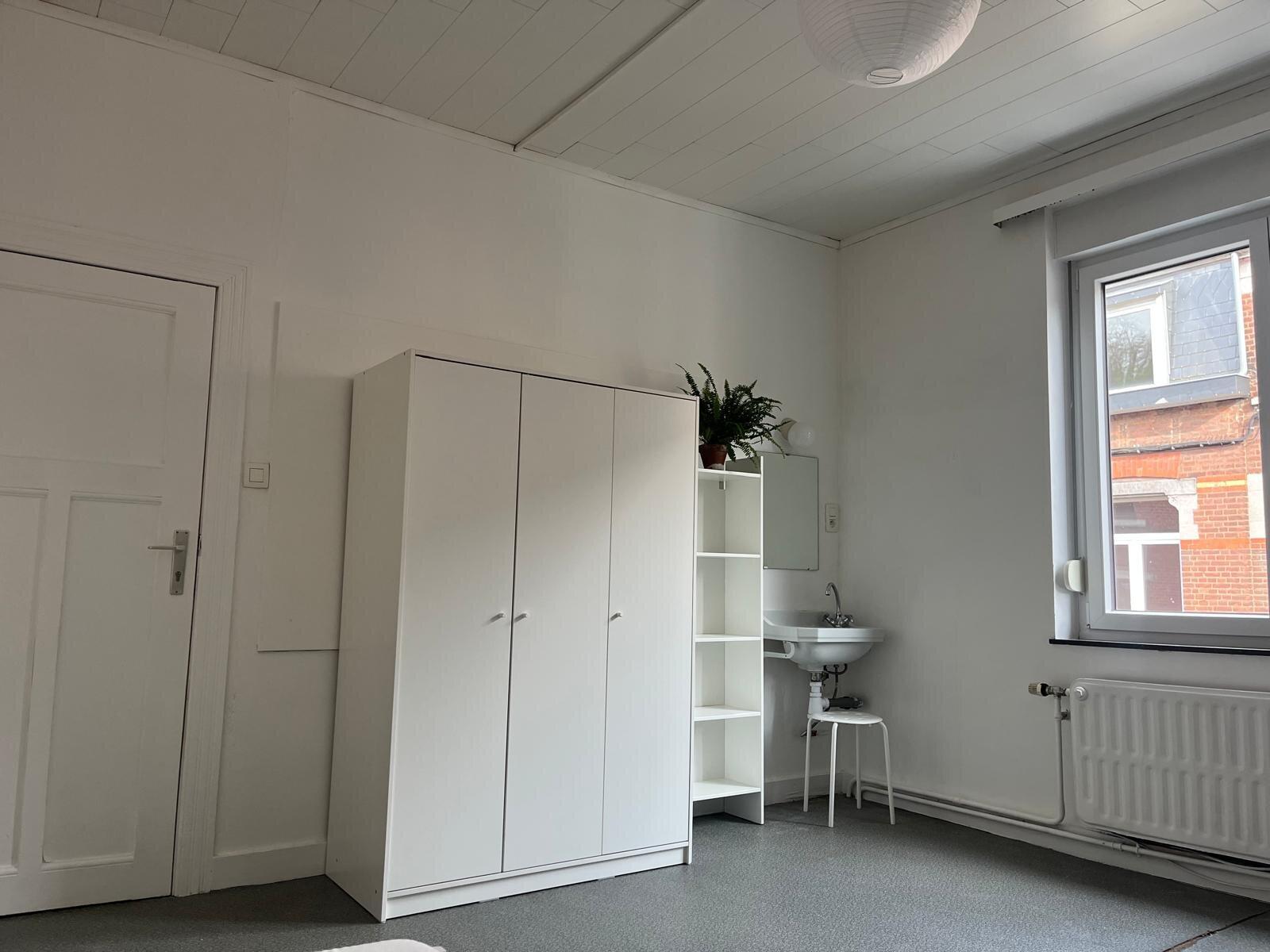 Une chambre lumineuse, dans une maison d'habitation située dans le quartier du Laveu à Liège. Partagée avec quatre autres étudiants. Cuisine, salon, salle de douches et jardin en commun.