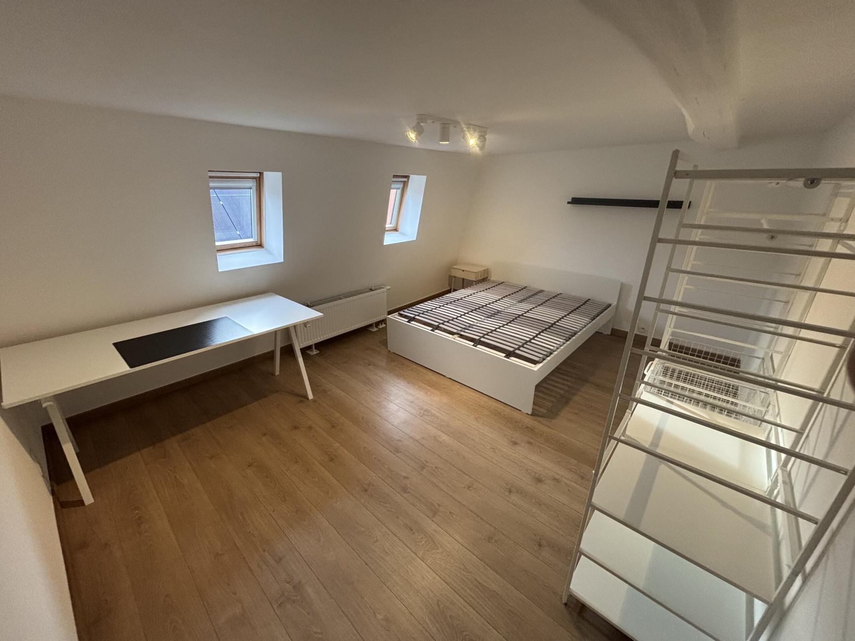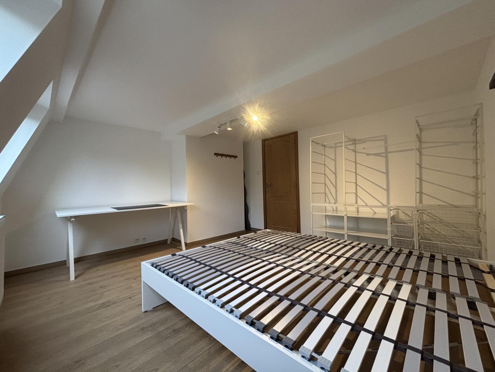 • Chambre spacieuse (15 m²) entièrement meublée (lit 1, 6 m, bureau, rangements, stores occultants)