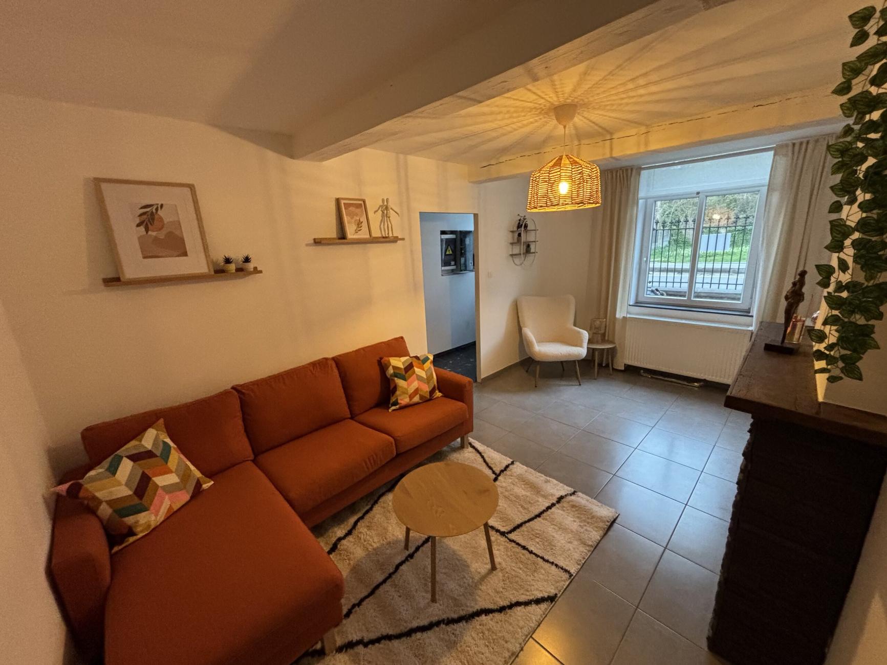 • Salon chaleureux et cosy avec TV et décodeur